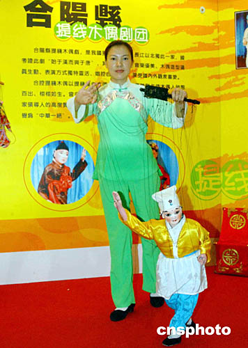 在24日的“陜西--香港經貿合作周”現場,陜西獨有的古老地方劇種----合陽提線木偶戲愛到參觀者青睞。作者:譚達明