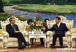 全國政協主席賈慶林,十一月二十四日在北京人民大會堂會見以黨主席弗朗切斯科·魯泰利為團長的意大利雛菊黨代表團。中新社記者:廖文靜