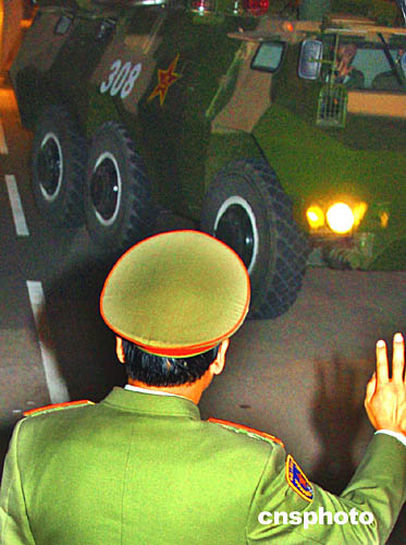 解放軍香港駐軍部隊輪換行動于11月25日入續展開,一支解放軍裝甲部隊當日零點率先從落馬洲口岸進入香港,奔赴軍營。