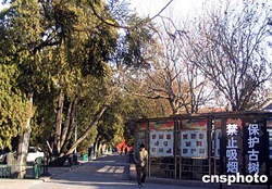 北京市有關部門近日使用GPS定位系統對北京城區的古樹進行衛星定位普查,精確測出地面古樹的坐標位置,并將每棵古樹的完整信息存入電腦信息系統中,便于科學化管理。據市園林局統計,目前北京市百年以上的古樹名木共有四萬多株,城區古樹占一半以上;年齡在一百至三百年的二級古樹占百分之八十五。但近年來,每年都有千分之三的古樹死亡,古樹保護迫在眉睫。圖中為北京勞動人民文化宮內的古樹。作者:張碩