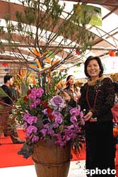 十一月二十八日,在福建漳州舉辦的第六屆海峽兩岸花卉博覽會上,臺灣中華花藝設計協會總會理事、著名插花表演藝術家陳好女士現場為觀眾插了一盆“龍鳳吉祥”的花藝盆景,博得觀眾的喝彩。作者:王東明