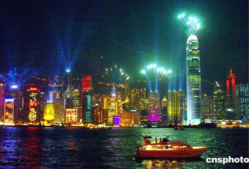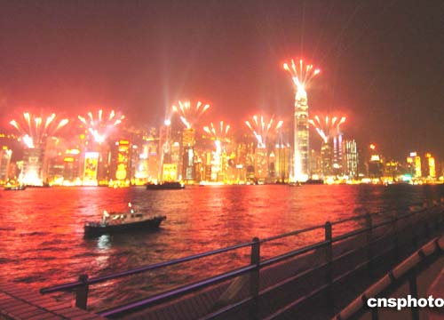 為迎接圣誕節的到來﹐周日的香港島主要建筑物在晚間20時燃放煙花﹐使得維多利亞港灣呈現一派節日景象。