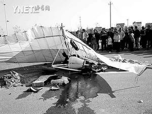 27日下午2:15左右,兩架由哈爾濱飛機制造廠生產的滑翔機在南京市雨花臺經濟開發區上空試飛。5分鐘后,其中一架滑翔機突然從高空中栽了下來,駕駛員當場身亡。另一架滑翔機見狀緊急降落,但不知道什么原因,在降落到地面時,這架飛機的駕駛員也受了傷。事故發生后,當地交警部門緊急出動,將傷者送往醫院搶救。事故原因正在進一步調查中。