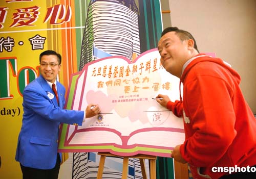 國際獅子總會港澳303區與香港演藝人協會將于2005年元旦聯合主辦慈善樓梯步行比賽活動,11月29日國際獅子總會港澳區總監楊偉誠與香港演藝人協會會長曾志偉出席簽署儀式。作者:洪少葵