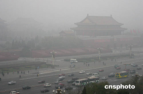 十二月二日清晨,北京天安門城樓和長安街籠罩在濃重的霧氣當中。北京連日來遭遇大霧天氣,首都機場眾多飛機航班延誤,京開、京沈、京津、京石等高速公路相繼關閉,城市道路能見度降低,交通事故明顯增多。中新社記者:毛建軍