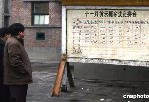 十二月二日下午,連續發生新的瓦斯爆炸、遇難礦工生還無望、井下搜救全面停止的壞消息使陜西銅川礦務局陳家山煤礦籠罩在悲痛、無望、凝重、憤怒的氣氛中。舉目四望,礦區內處處可見的宣傳牌與當今的氣氛形成極為不和諧的對比。其中該礦十一月采煤競賽臺告示牌,清晰記錄了發生瓦斯爆炸事故前的一段歷史。作者:任晨鳴