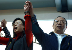 中新網12月3日電 由新任國民黨“中常委”蔣方智怡、林奕華、姚江臨組成的“菜鳥助選團”,2日前往同黨籍臺北市“立委”候選人章孝嚴競選總部,為他加油打氣。