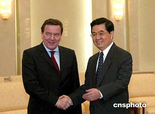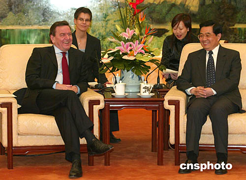 中國國家主席胡錦濤十二月七日在北京會見德國總理施羅德。中新社記者:滿會喬
