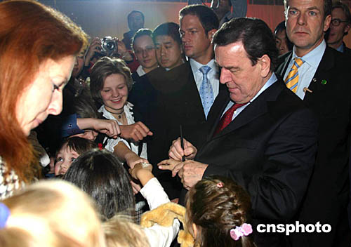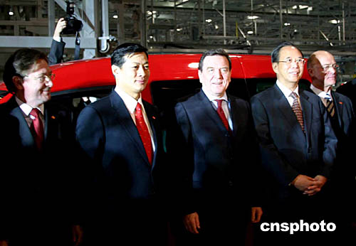 二00四年十二月七日,正在吉林省長(zhǎng)春市進(jìn)行參觀訪問(wèn)的德國(guó)總理施羅德,在中國(guó)副總理曾培炎陪同下,為當(dāng)日正式建成投產(chǎn)的中德合作項(xiàng)目大眾汽車有限公司轎車二廠剪彩。轎車二廠是一汽——大眾汽車有限公司新的生產(chǎn)基地。作者:吳兆飛