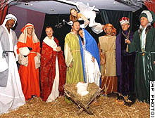美國(guó)總統(tǒng)布什、英國(guó)首相布萊爾以及英國(guó)女王伊利莎白的丈夫——菲利浦親王也在這一場(chǎng)景中出現(xiàn),他們成為“耶穌誕生”時(shí)的三位智者。