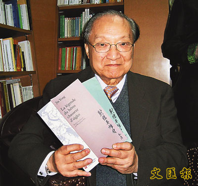 中新網12月10日電 據香港文匯報報道,香港著名武俠小說作家查良鏞(金庸)首部翻譯成法文的《射雕英雄傳》于較早前面世,在香港唯一出售該本小說的書局昨晚特別舉行酒會,并邀得查良鏞出席,為讀者在小說上簽名。