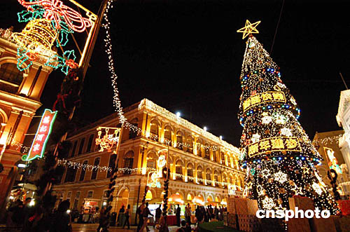 十日,澳門舉行“圣誕及新年節日亮燈”儀式,是晚全澳的節日燈飾同時點亮,令澳門洋溢著濃厚的節日氣氛。作者:梁永強
