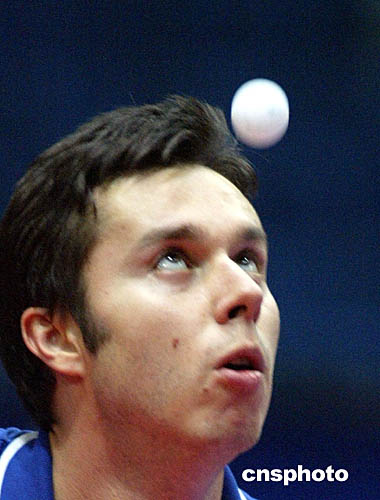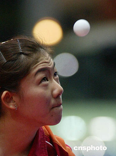 二零零四年十二月十日晚,在北京舉行的大眾汽車2004年國際乒聯職業巡回賽總決賽八分之一比賽中。中新社記者:武仲林