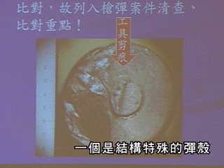 臺灣“中國時報”今日頭版的位置報道說,項目人員是在11月底,根據刑事局提供的分析資料、借訊在押的擁槍嫌犯,并循線查出臺南的一個槍械制造集團所制造販售的子彈,和項目人員在“319槍擊案”現場尋獲的2顆彈殼完全相同,因而前往緝捕,一舉捕獲5名嫌犯,主嫌坦承,“319槍擊案”現場發現的彈殼是他們所制造販售的,隨后并帶警方起出制造工具。