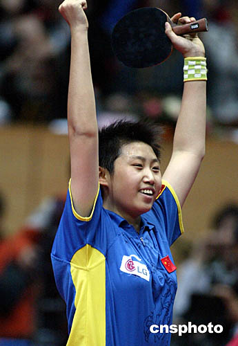 十二月十二日,年僅十六歲的小將郭躍在北京舉行的大眾汽車二零零四年國際乒聯職業巡回賽總決賽女單半決賽中戰勝牛劍鋒,獲女單冠軍。中新社記者:武仲林