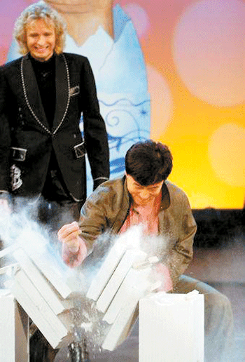 此外,他還與著名網球選手費得勒一起亮相德國電視節目《Bet, it?》,在節目進行中,成龍即興作驚險表演,用單臂擊碎大石,引來觀眾一片驚嘆。(阿湯)