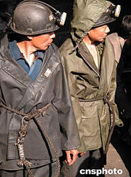 湖南譚家山礦難搜救正在緊張進行,兩名救援礦工在等待下井。作者:劉晶