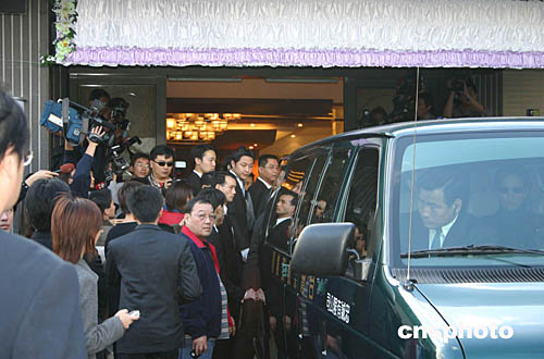圖為靈車正將遺體送到暫厝的“榮總”懷仁堂。