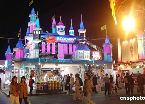 圖為經營小型家用電器的威馬企業參展攤位,外型如城堡入夜時分光芒四射。作者:洪少葵