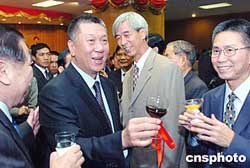 何厚鏵向與會(huì)人士一一敬酒,祝賀澳門回歸祖國五周年。 作者:宋吉河