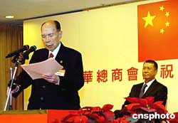 全國政協(xié)副主席、澳門中華總商會(huì)會(huì)長馬萬祺,16日在澳門中華總商會(huì)慶祝澳門特別行政區(qū)成立五周年酒會(huì)上致辭,澳門特別行政區(qū)行政長官何厚鏵參加酒會(huì)。作者:宋吉河