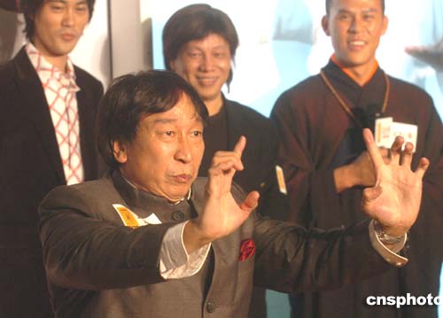 由周星馳自編﹑自導(dǎo)﹑自演耗時(shí)兩年多拍攝的影片《功夫》16日晚在香港時(shí)代廣場舉行首映開幕禮﹐在片中擔(dān)任主要角色的趙志凌現(xiàn)場表演“洪拳”,該片將在12月23日在全球上映。作者:趙振清