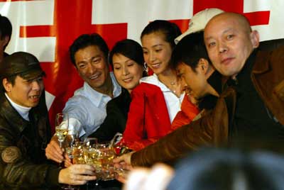 510萬、3000萬、5300萬,這3個(gè)數(shù)字分別是《天下無賊》上映第1天、第4天和第8天的全國票房,而昨晚,也就是《天下無賊》上映的第10天,這個(gè)數(shù)字又猛漲到8000萬。為了慶祝影片取得如此佳績,同時(shí)慶祝馮小剛再三打破賀歲片票房紀(jì)錄,“眾賊”紛紛舉起小榔頭,鑿破了代表8000萬元票房大關(guān)的巨大冰塊。