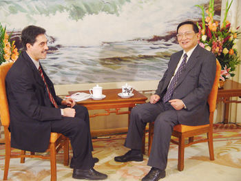 中新網12月23日電 據外交部網站消息,12月23日,國務委員唐家璇在人民大會堂接受了卡塔爾半島電視臺駐京記者伊扎特的采訪,介紹了他即將于12月25日出訪巴勒斯坦和以色列的目的,并就中東和平進程、伊拉克局勢等其他問題回答了提問。