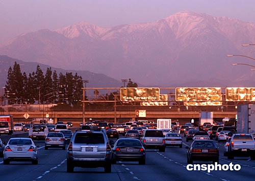 當地時間十二月二十三日黃昏時分的美國洛杉磯,各條大道涌現出城度圣誕節的滾滾車流。中新社記者:賈國榮