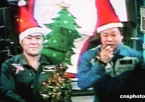 據十二月二十五日美國CNN報道,正在國際空間站的歷史上第一位美籍華裔站長焦立中(右),與俄羅斯宇航員沙里科夫共同從太空向地球人說,我們祝你圣誕快樂,新年愉快。(電視畫面)作者:賈國榮
