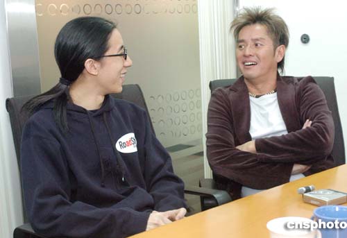 歌星譚詠麟12月28日在香港出席《RoadShow“紅人館”》,為全新推介---“校長駕到”擔任嘉賓主持,今次請來樂壇新人房祖名等人接受訪問,在未錄像前,譚詠麟跟房祖名談笑風生。該節目稍后將在全線RoadShow流動媒體上播放。作者:鄧慶樂