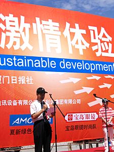 在第三十六屆世界電信日即將來臨之際,中國電信寬帶用戶突破一千萬,成為中國寬帶業務眾多服務提供商中首個突破千萬用戶的運營商。圖為廈門電信公司總經理陳揚忠宣布啟動“激情體驗”系列慶祝活動。作者:楊伏山