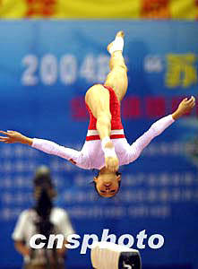 五月十七日晚,全國體操錦標(biāo)賽暨奧運(yùn)會預(yù)選賽在江蘇蘇州完成所有項(xiàng)目的比賽,安徽選手李婭在平衡木決賽中戰(zhàn)勝對手獲得冠軍。圖為李婭在平衡木比賽中。中新社記者:盛佳鵬
