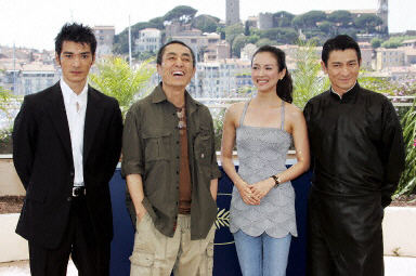 中新網(wǎng)5月20日電 法國(guó)戛納當(dāng)?shù)貢r(shí)間5月18日下午2時(shí),報(bào)道戛納電影節(jié)的中國(guó)記者被請(qǐng)到馬丁內(nèi)斯飯店的露天酒吧,與參展影片《十面埋伏》導(dǎo)演張藝謀以及主演金城武、劉德華、章子怡見(jiàn)面,上!缎侣劤繄(bào)》的特派記者也在其間。該報(bào)今日刊出了記者對(duì)張導(dǎo)及三位主演的完全訪談錄,本網(wǎng)現(xiàn)將全文轉(zhuǎn)載如下: