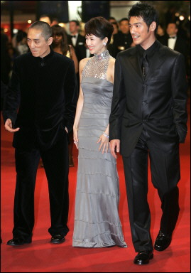 據法新社報道,中國導演張藝謀攜演員章子怡、金城武19日走過第57屆法國戛納電影節的紅地毯,出席參展影片《十面埋伏》的正式展映。