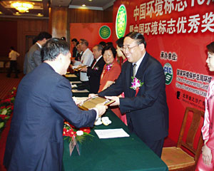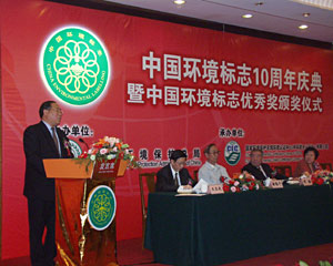 在慶典儀式上,國家環(huán)境總局向獲得中國環(huán)境標(biāo)志優(yōu)秀獎和促進(jìn)獎的中外企業(yè)頒獎。聯(lián)合國環(huán)境署、德國藍(lán)色天使、歐洲歐盟之花、北歐白天鵝、日本生態(tài)標(biāo)簽、韓國環(huán)境標(biāo)志、瑞典III型標(biāo)志、全球環(huán)境標(biāo)志網(wǎng)絡(luò)等國際組織的專家以及全國政協(xié)、全國人大、國家發(fā)改委、商務(wù)部等政府、科研和企業(yè)機(jī)構(gòu)代表三百余出席了慶典。