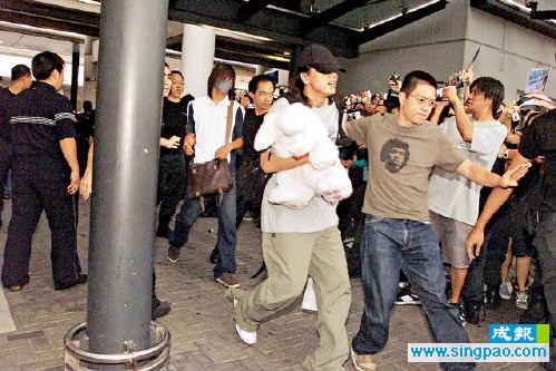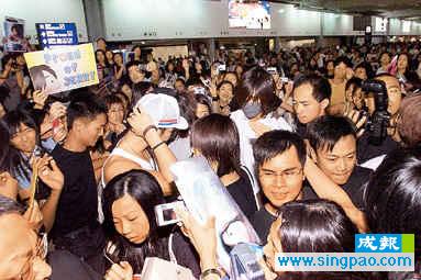 F3在大約6時抵達,而朱孝天有工作在身稍后才到港。現(xiàn)場所見仔仔帶上口罩,帶病出席盛會。五百多Fans一見偶像立即蜂擁而上,保安由六人增至60人,F(xiàn)ans爭相上前握手和送花,場面一片混亂,更弄破一名攝影記者的鏡頭。期間吳建豪在人海中被人拍中頭部,使他十分愕然,在旁的暴龍加以安慰。F3離開機場后,F(xiàn)ans立即變成追蹤隊,在公路上追車時險象環(huán)生。此外,蔡依林昨晚在百忙中抽空到Dior掃貸,盡顯購物狂本色。