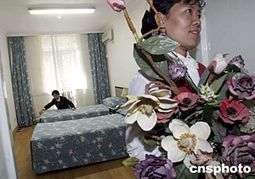 二零零四年高考臨近,北京各星級酒店的高考房經濟大戰紛紛提前打響。位于人大附中、北大附中等考點附近的友誼賓館六月一日至六月二十六日推出高考房,并將蘇州園林風格的公寓套間作為考生的“避暑房”,為考生提供幽雅安靜的學習環境。中新社記者:張勤