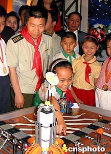 楊利偉與小朋友們一起饒有興趣地觀看和操作了機器人火星探險車等展覽項目。他所到之處,都被熱情的孩子們團團圍住,索要簽名、合影留念。楊利偉盡可能地滿足了每個人的要求,并不時提醒大家“不要擁擠、別碰到孩子”。
