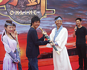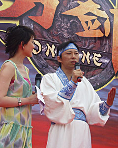 在象征著中國龍的居庸關長城腳下,上千位手持搜狐“群英帖”的嘉賓匯集一堂,儼然一場名副其實的江湖群英會。《刀劍Online》發布會以氣勢恢弘的舞龍開場,代表著《刀劍Online》將在群雄逐鹿的網游市場,以原汁原味的中國功夫開篇中國人自己的網游傳奇。“搜狐掌門人”張朝陽一身古代俠士裝扮出場,一番刀劍揮舞,顯示了不凡的武功造詣。而作為此款網游主題音樂代言人的內地著名歌手孫楠則以一曲曲風高揚,極具武俠風格的《刀劍》將發布會氣氛推向高潮。