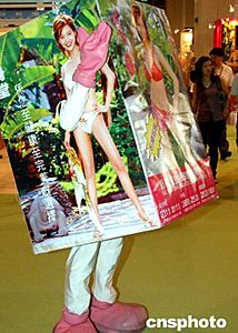 “第三十五屆夏日婚紗及結婚用品展”六月四日在香港會展中心開幕,是次展覽云集兩百多間公司、三百多個攤位。圖為商家卡通人在展會上促銷。作者:錢興強