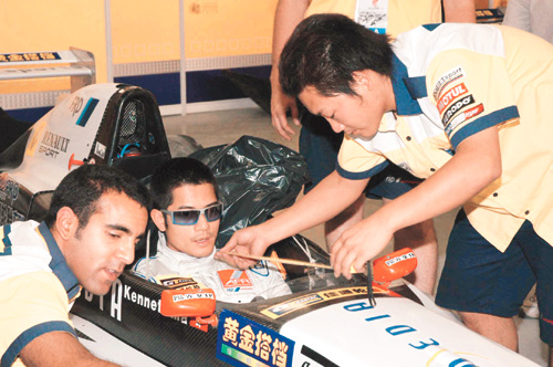 說到今次出賽,“城城”表示所駕駛的賽車,是由贊助商特地自意大利運來的,還替他度身訂制座位。問他可擔心有危險?他笑道:“不怕的,因為我戴了頭盔嘛!(那么信心如何?)今次是慈善為首要,輸贏反而是其次。雖然今天的賽道有些滑,但由于只是熱身,我不會拚盡,待九月舉行的一級方程序賽事才拚盡。”又“城城”昨日落場即成為焦點,很多人都爭相跟他合照。
