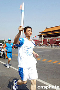 在火炬點(diǎn)燃后,在148名火炬手中第一個(gè)出場(chǎng)的國家體育總局副局長(zhǎng)、中國奧委會(huì)副主席、北京奧組委副主席于再清接過火炬,開始了這次傳遞活動(dòng)。據(jù)悉,NBA休斯頓火箭隊(duì)中鋒姚明擔(dān)當(dāng)最后一棒。