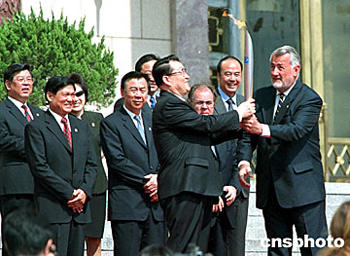 中新網(wǎng)6月9日電 今天上午9時(shí),2004年雅典奧運(yùn)會(huì)火炬北京傳遞活動(dòng)在北京正式開始。活動(dòng)起點(diǎn)設(shè)在人民大會(huì)堂東門外廣場(chǎng),傳遞途中設(shè)立148個(gè)接力點(diǎn),終點(diǎn)設(shè)在頤和園。