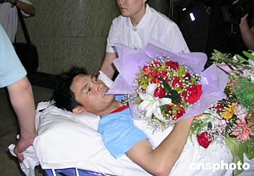 中國政府派出接送在阿遭襲受傷工人的專機,六月十四日晚十點五十分抵達山東省城濟南國際機場。當兩位輕傷員走下飛機玄梯時,受到了在機場等候多時的中鐵十四局員工的熱烈歡迎。歡迎人群高聲呼喚著“歡迎回家!”這親切的鄉音令傷員們激動得熱淚盈眶。作者:胡洪林