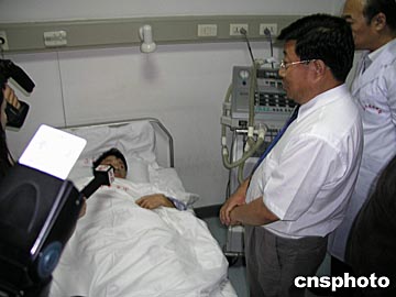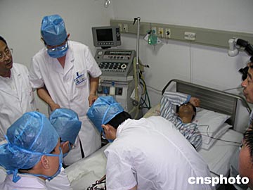 山東省立醫院專家組的專家在特護病房立即為剛剛入院的傷員檢查傷勢。作者:胡洪林