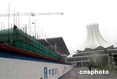 廣西南寧國際會展中心是每年一度中國-東盟博覽會唯一指定場館,會展中心位于桂海高速公路南寧出口處,中心拱頂猶如一朵朱槿花(南寧市市花),盛開在南寧民歌廣場旁。從二零零四年起,中國-東盟博覽會每年十一月都將在廣西南寧舉辦。南寧國際會展中心二期工程是南寧市迎接中國-東盟博覽會的重大建設項目之一,計劃于二零零四年年內完成。圖為正在加緊建設中的南寧國際會展中心二期工程。中新社記者:張勤
