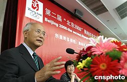 二十四日,由北京奧組委主辦的第二屆“北京二零零八奧林匹克文化節”系列活動在北京舉行,國際奧委會文化與教育委員會主席何振梁為文化節開場活動——北京二零零八奧運國際論壇二零零四大會開幕致辭。中新社記者:廖文靜