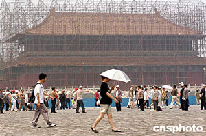 六月夏季,北京故宮博物院乾清門內(nèi)西側(cè)系列旁殿腳手架林立,故宮百年大修工程正在進行之中。故宮于1420年建成,此次維修是自1911年辛亥革命以來近百年間,對故宮進行的最大規(guī)模的維修。中新社記者:鄒憲