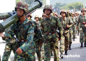 為慶祝香港回歸祖國(guó)七周年,中國(guó)人民解放軍駐香港部隊(duì)于七月一日舉行三軍軍營(yíng)開(kāi)放活動(dòng),在赤柱軍營(yíng)開(kāi)放活動(dòng)中新增加緊急出動(dòng)演練項(xiàng)目。 作者:錢興強(qiáng)